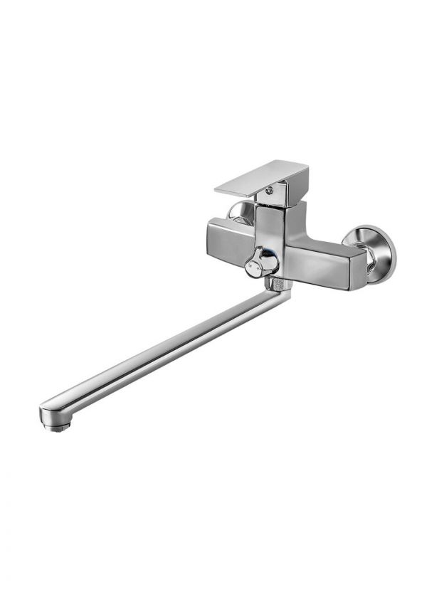 Смеситель STEMIX STM 340-006E — это современный однорычажный смеситель для ванны и душа, который легко купить недорого для дачи или дома. Благодаря длинному поворотному изливу и вертикальному (настенному) монтажу, он подходит для стандартных ванных комнат с двумя отверстиями. Керамический картридж 35 мм обеспечивает плавную регулировку температуры воды и защищает от протечек, что особенно важно при интенсивном использовании.