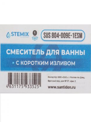 Смеситель для ванны STEMIX SUS 804-009E-1ESM — надежное решение из нержавеющей стали с керамическим картриджем, долговечность и стиль для вашей ванной по разумной цене.