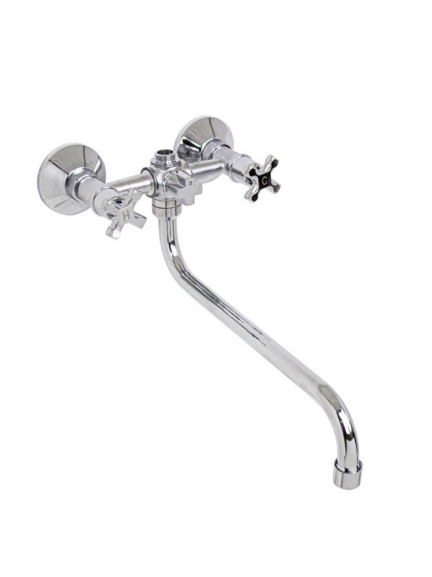 Смеситель оснащён двухвентильной системой управления с керамической кран-буксой, что обеспечивает плавное и точное смешивание воды, а также увеличивает срок службы механизма.