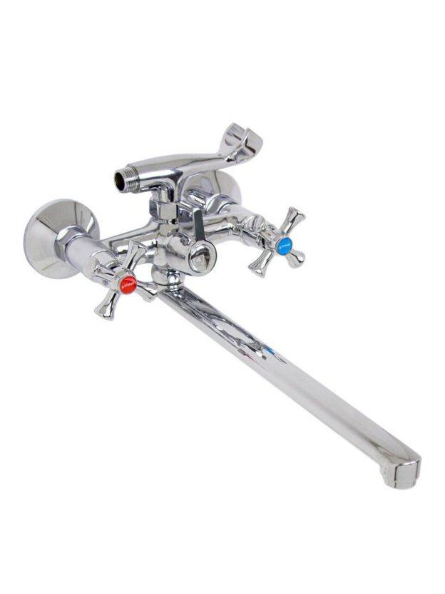 Смеситель для ванны Stemix STM 327-140B: долговечный двухвентильный смеситель с керамической кран-буксой и длинным поворотным изливом для комфортного использования дома и на даче.