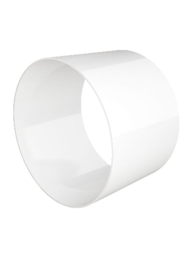 Соединитель фасонных элементов предназначен для соединения двух пластиковых фасонных элемента сечением 100 мм между собой. Представляет собой короткий участок круглого пластикового канала. Надевается на патрубки фасонных изделий сверху.