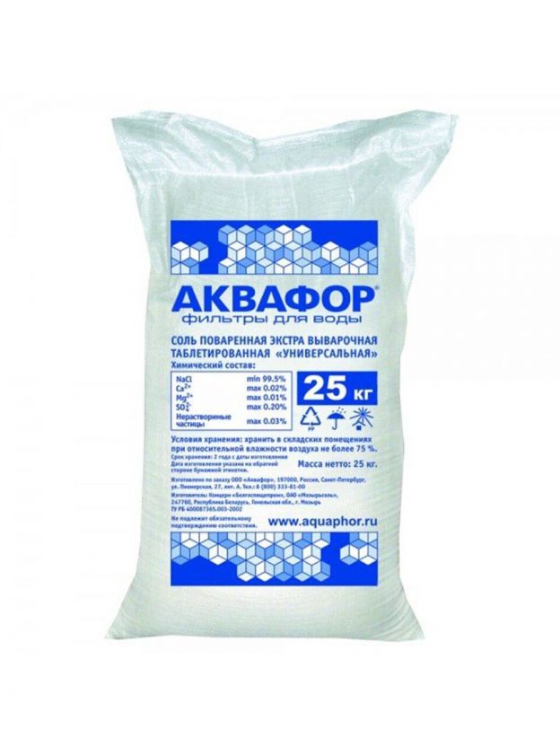 Соль поваренная Аквафор, Универсальная, 104069, в таблетках, 25 кг