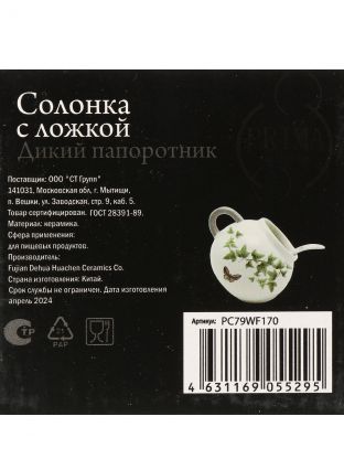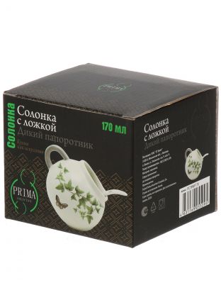 Солонка из керамики 170 мл с ложкой PRIMA COLLECTION «Дикий папоротник» — стильное решение для кухни и дачи: натуральный материал, трендовый дизайн, удобный формат.