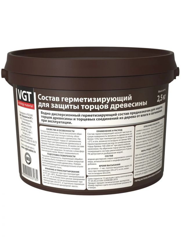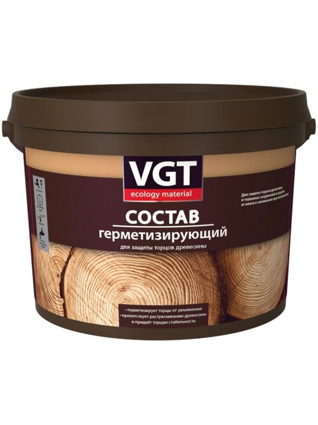Водно-дисперсионный герметизирующий состав VGT предназначен для защиты торцов древесины и торцевых соединений из дерева от влаги и загнивания при эксплуатации.