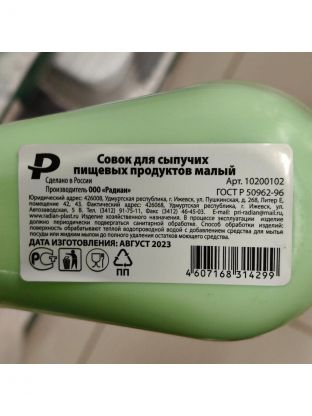 Совок для сыпучих продуктов, пластик, пластиковая ручка, малый, в ассортименте, Радиан