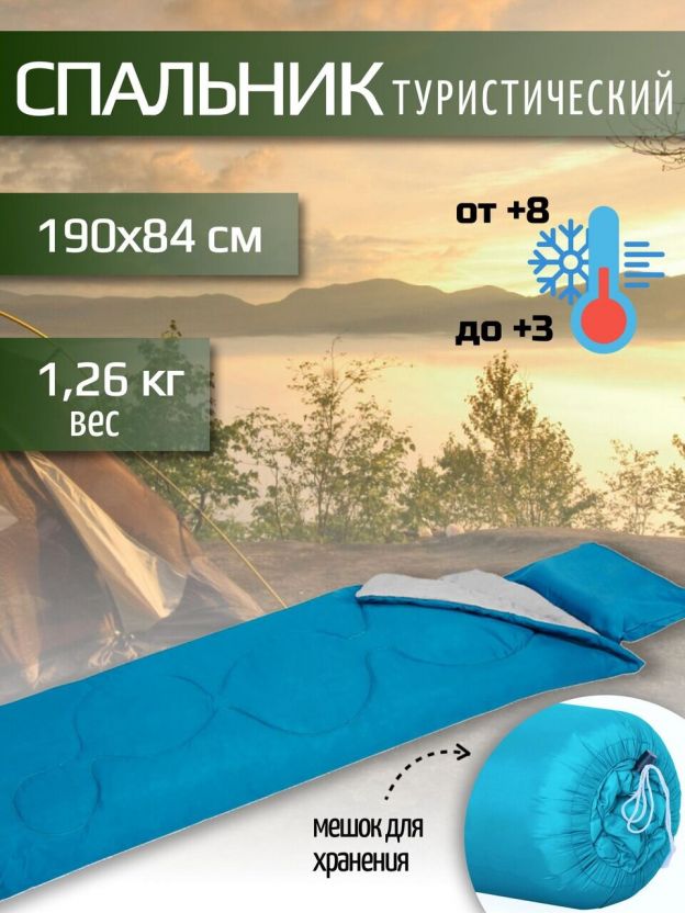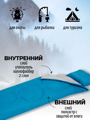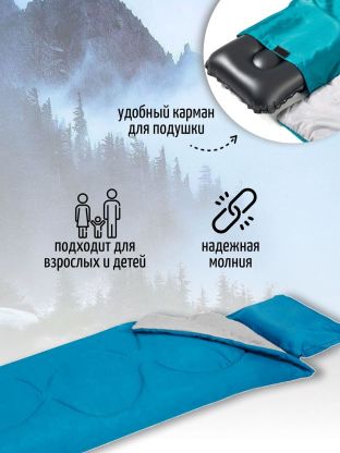 Объемный спальник-одеяло прямоугольной формы предназначен для несложных походов. Удобен тем, что турист в нем спит без стеснения в любом положении.