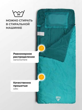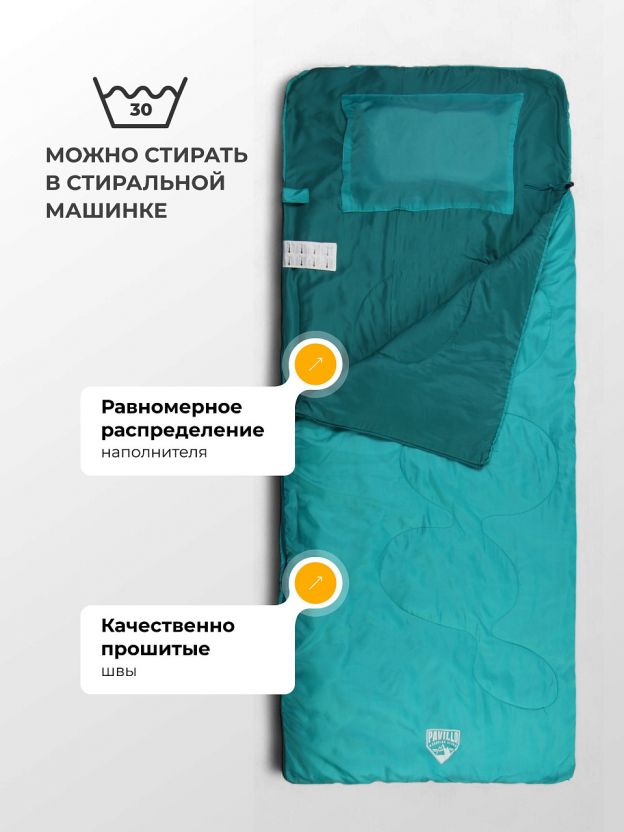 Спальный мешок одеяло, 205х90 см, 4 °C, 8 °C, 2 слоя, полиэстер, холлофайбер, в ассортименте, Bestway, 68101