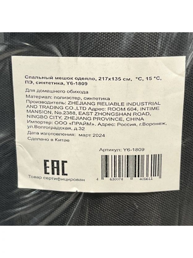 Спальный мешок одеяло, 217х135 см, 0 °C, 15 °C, полиэстер, синтетика, Y6-1809