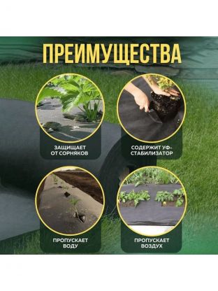 Агроспан черного цвета - нетканый мульчирующий материал — защита от сорняков. Легкий и прочный, экологически чистый материал. В процессе производства в мульчирующий материал вносят УФ-стабилизатор, что обеспечивает длительный срок службы (не менее 5 лет), а добавка технического углерода окрашивает материал в черный цвет. Благодаря наличию технического углерода материал поглощает большее количество тепла, это позволяет обеспечить быстрое прогревание почвы. Сорняки и их семена, находясь под черным мульчирующим материалом не получают необходимого количества света и погибают. Структура материала мульчи позволяет производить полив и вносить жидкие удобрения.