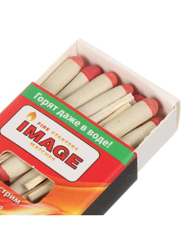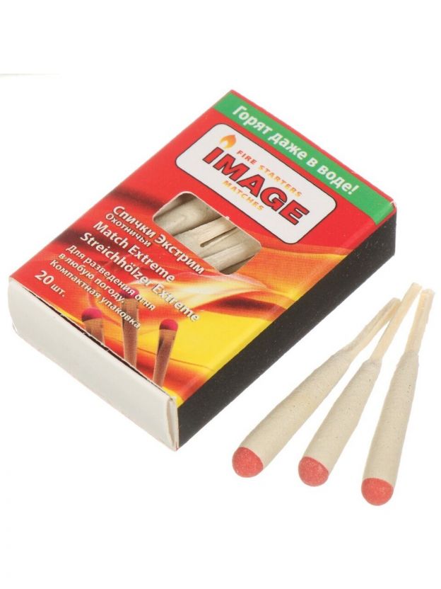 Откройте для себя спички охотничие Image, которые идеально подойдут для экстремальных условий. Эти спички длиной 43 мм обеспечат надежное зажигание в любых ситуациях. Упаковка содержит 20 штук, что делает их удобными для длительных путешествий и охоты.