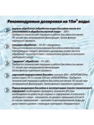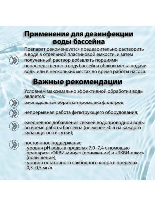 • комплексная обработка воды: быстрая дезинфекция и осветление;