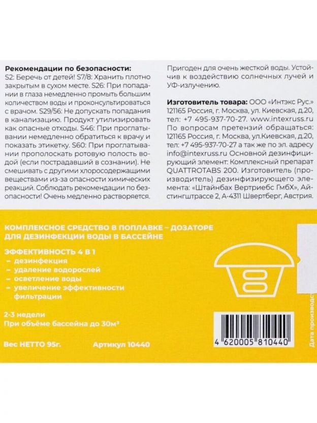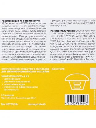 - Четыре в одном: дезинфекция, коагуляция, борьба с водорослями и осветление воды.
