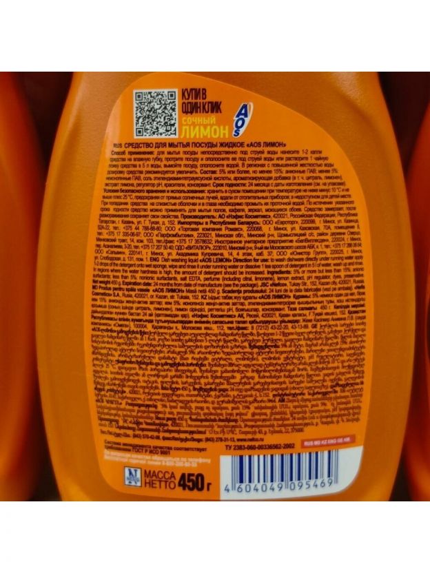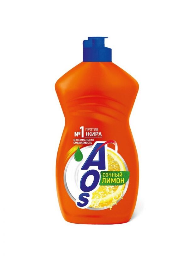 Средство для мытья посуды AOS, Лимон, 450 мл