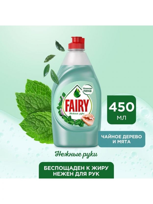 Средство для мытья посуды Fairy, Нежные руки Чайное дерево и мята, 450 мл