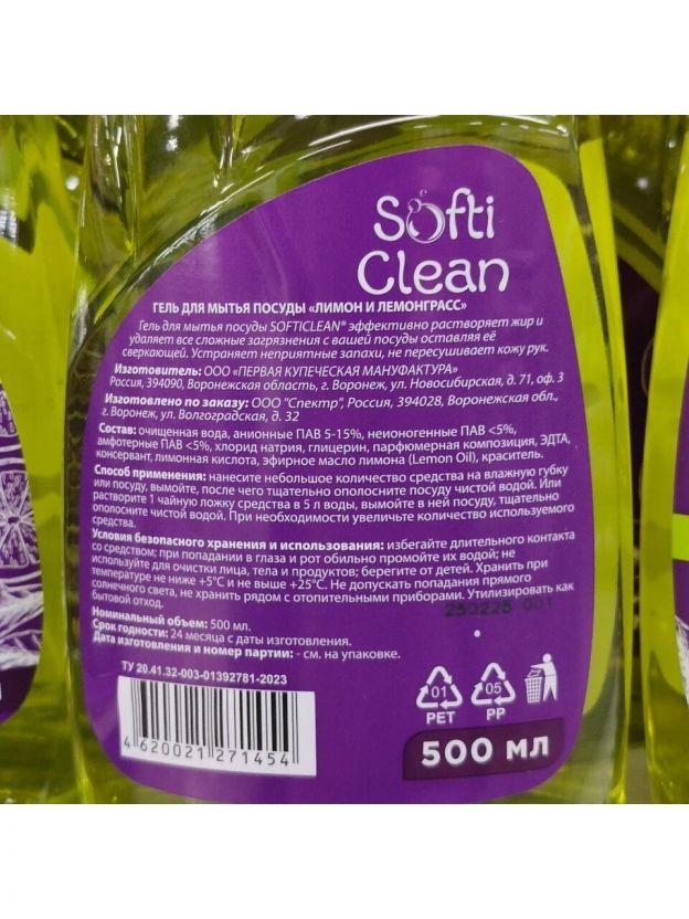 Средство для мытья посуды Softi Clean, Лимон и лемонграсс, 500 мл