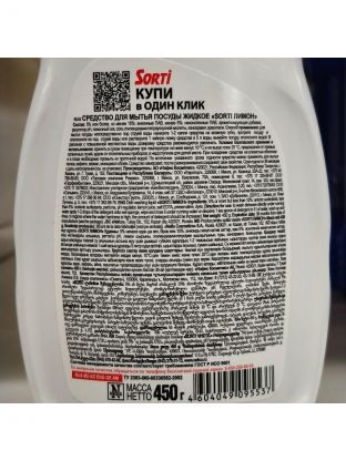 Средство для мытья посуды Sorti, Лимон, 450 мл