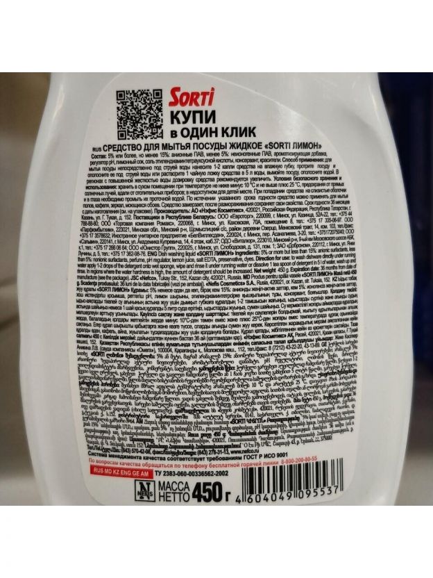 Всего одна капля нового, более концентрированного Sorti сможет отмыть целые горы грязной посуды. Тарелки, стаканы, кастрюли и сковородки - формула Sorti с легкостью удалит даже самые сложные загрязнения с любой поверхности без особых усилий. Характеристики: Состав: _ 5 %, но Объем: 450 мл; Цвет упаковки: белый; Преимущества: Особая густая формула отлично отмывает жир даже в холодной воде; После ополаскивания не оставляет на посуде разводов; Придает посуде кристально чистый блеск; Отлично пенится и легко смывается; Густая формула поможет экономить семейный бюджет и будет радовать своими свойствами и приятным запахом во время уборки.
