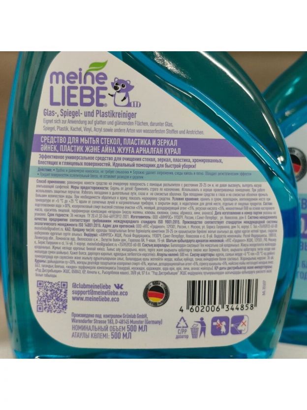Средство для мытья стекол, пластика и зеркал Meine Liebe, 500 мл, ML35101