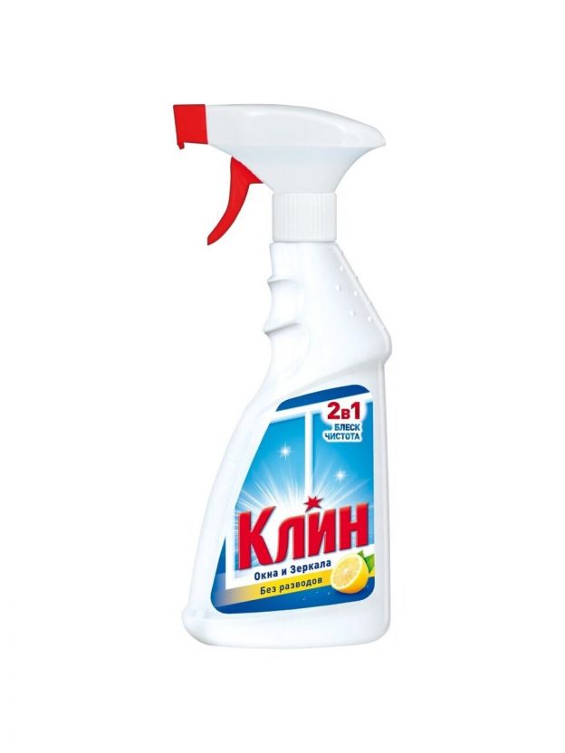 Средство Клин на основе изопропилового спирта качественно очищает стекла от грязи, пыли, не оставляет разводов.
