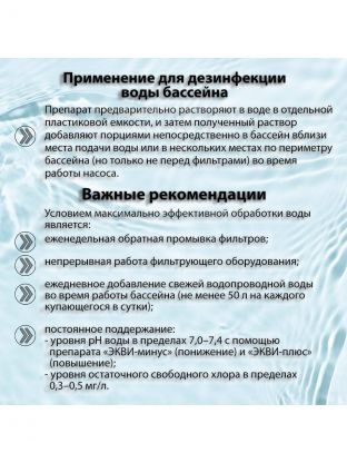 Средство Маркопул Кемиклс Экви-Минус представлено в удобной форме гранул, упакованных в ведро весом 1 кг. Благодаря этому, продукт легко дозируется и хранится, обеспечивая долгосрочную эффективность. Экви-Минус не содержит хлора, что делает его безопасным выбором для тех, кто предпочитает экологически чистые решения для ухода за бассейном.