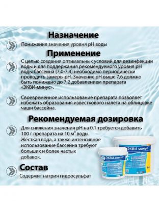 Откройте для себя идеальное решение для поддержания чистоты и здоровья вашего бассейна с помощью средства для понижения pH в бассейне Маркопул Кемиклс Экви-Минус. Это средство создано для тех, кто заботится о качестве воды в своем бассейне и стремится создать оптимальные условия для дезинфекции воды. Использование этого продукта поможет избежать образования известкового налета на облицовке чаши бассейна, что значительно упростит уход за ним.