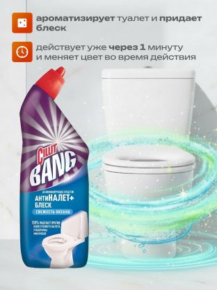 Дезинфицирующее средство для туалета, уничтожает грязь и микробы. Ваш туалет сияющий и чистый всего через 1 минуту!