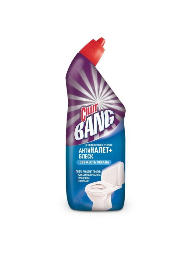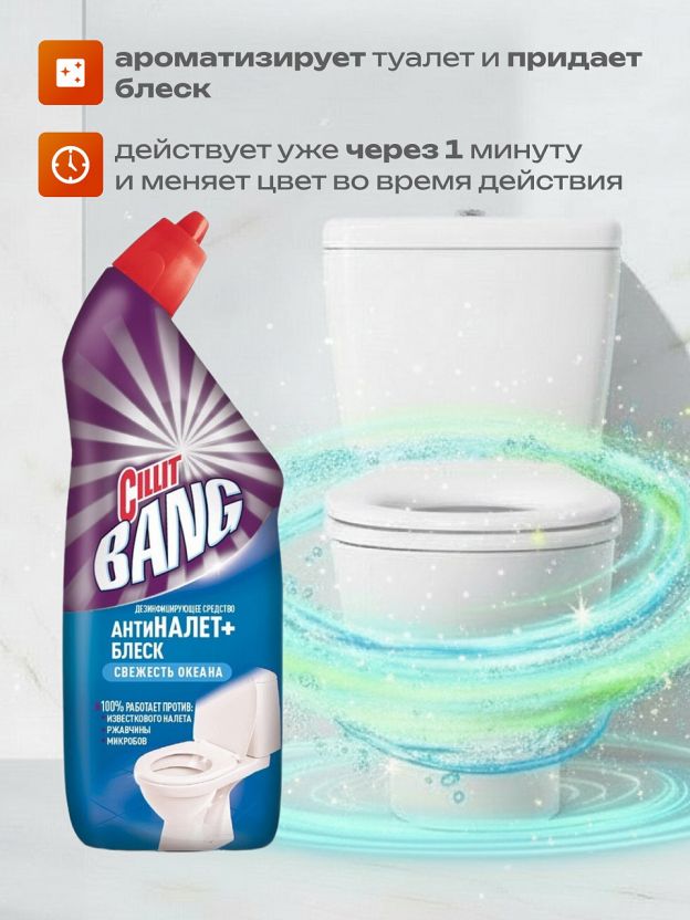 Средство для унитаза Cillit Bang, Анти - налет + Блеск, Свежесть океана, гель, 750 мл, дезинфицирующее, 8149771