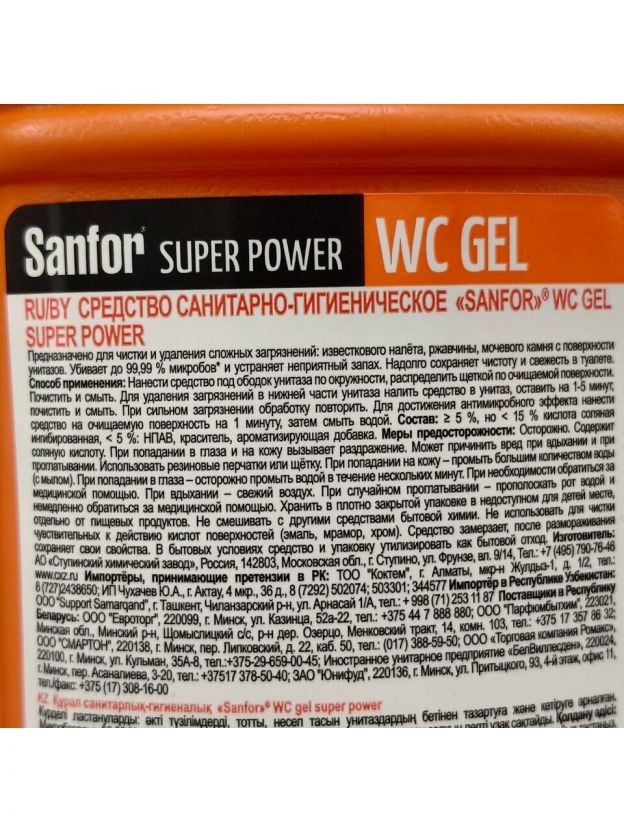 Средство для унитаза Sanfor, Super Power, 750 мл, свежесть и чистота за 1 минуту, 9611