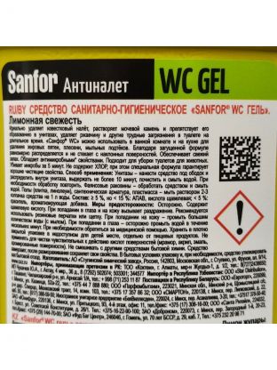 Средство для унитаза Sanfor, Свежесть лимона, гель, 750 мл, 1550