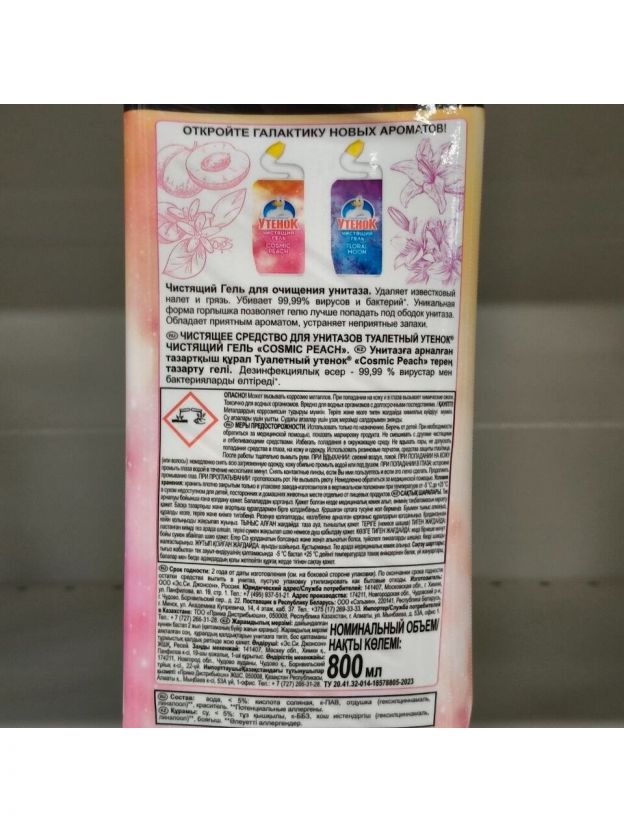 Средство для унитаза Туалетный Утенок, Cosmic Peach, гель, 800 мл, 865167