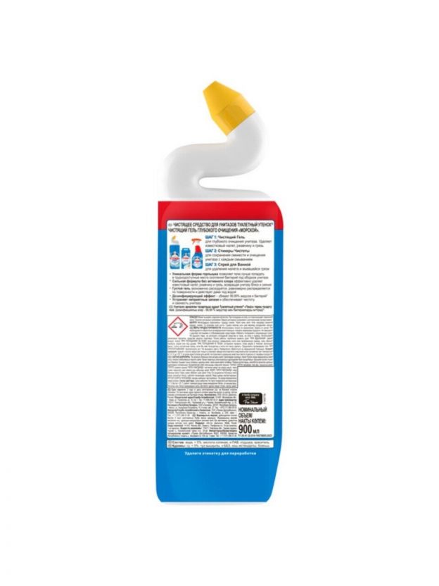 Средство для унитаза Туалетный Утенок, Морской, гель, 900 мл, глубокое очищение, 865159
