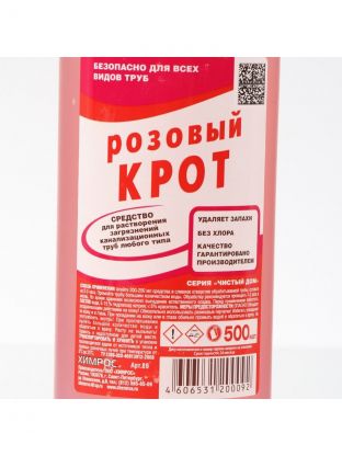 Средство от засоров Химрос, Розовый крот, 500 мл, для фановых труб