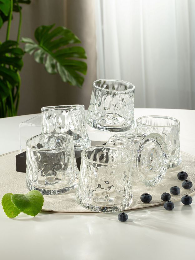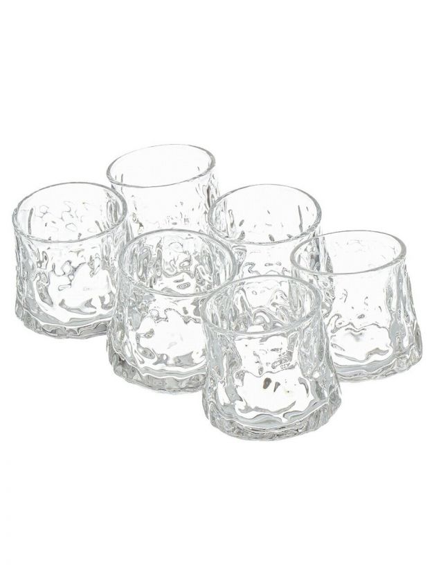 Стаканы выполнены из прозрачного стекла, в наборе 6 штук. Размер — низкие и широкие, что удобно для сервировки и хранения.