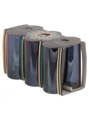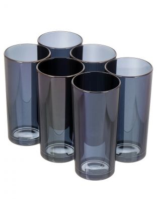 Объем каждого стакана — 230 мл, форма высокая и широкая (коллинз), материал — прочное стекло, цвет — синий.