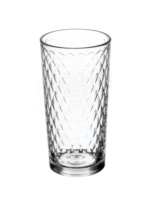 Стакан высокий и широкий, объём — 230 мл, форма — классический "коллинз", цвет — бесцветный, материал — стекло.