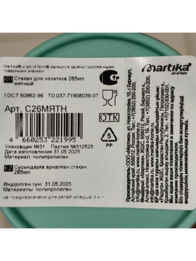 Закажите пластиковый стакан Martika 285 мл прямо сейчас — это выгодное решение для тех, кто ценит практичность, безопасность и стиль в одном товаре.