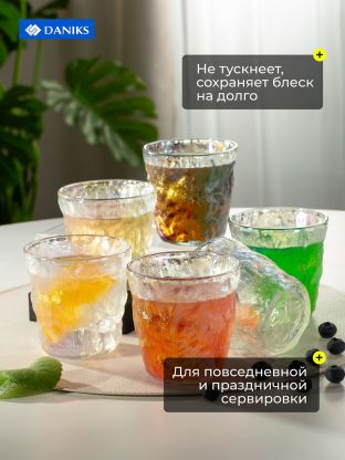 Многие спрашивают, чем отличается этот набор от классических стеклянных стаканов. Здесь вы получаете не только прочное стекло, но и премиальный внешний вид — перламутровое покрытие и современный стиль. Набор из 6 стаканов Daniks удобно использовать для семьи, гостей или в качестве подарка. Если вас интересует, как использовать такие стаканы, — они подходят для холодных и прохладительных напитков, воды, сока, коктейлей, а также для сервировки праздничного стола.
