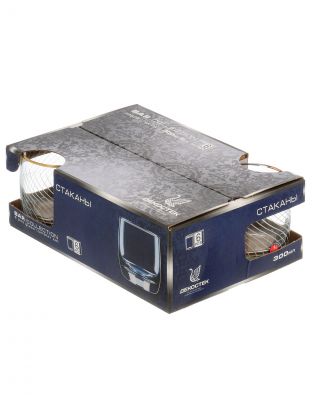 Объем каждого стакана — 300 мл, форма — низкий широкий тумблер, что удобно для воды, виски и других напитков.