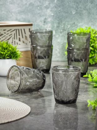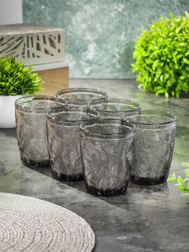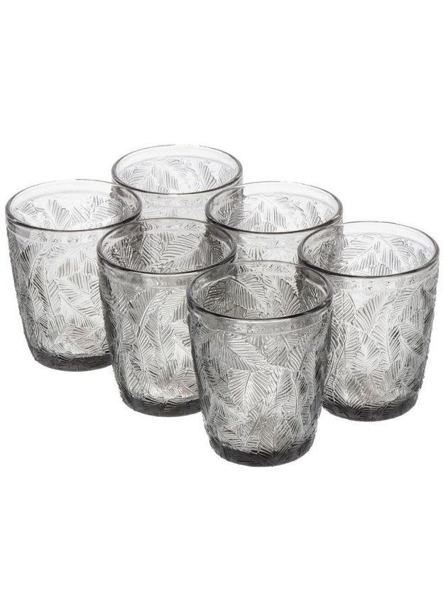Стакан 300 мл, стекло, 6 шт, Листья, серый, Y6-10166/B060051