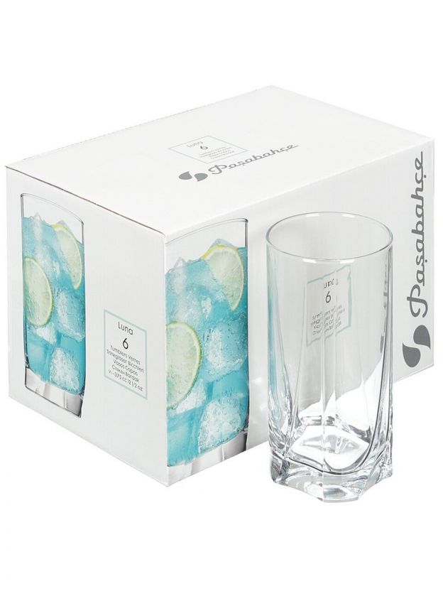 Стаканы Pasabahce Luna 390 мл — набор из 6 стильных бокалов для воды и коктейлей: современный дизайн, прочное стекло, универсальность для дома и подарка.