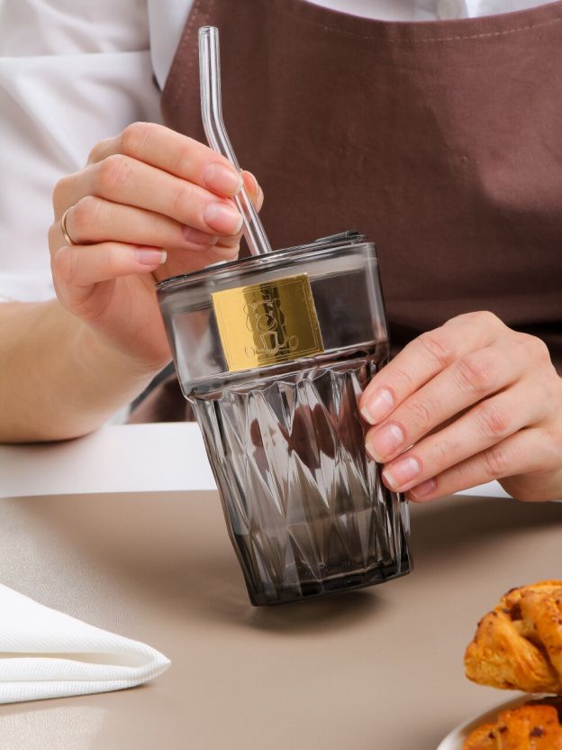Стильный стеклянный стакан 450 мл Smoke с трубочкой — идеальный выбор для воды, сока, лимонада. Большой объём, современный дизайн, выгодная цена для дома и дачи.