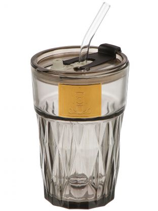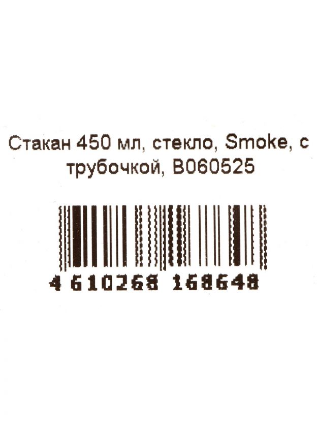 Стакан 450 мл, стекло, Smoke, с трубочкой, B060525