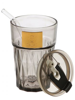 Стакан большой, объёмом 450 мл, выполнен из серого стекла и комплектуется трубочкой. Модель универсальна для воды, сока, лимонада.