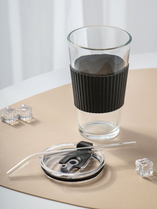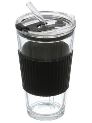 В наборе 1 стакан объёмом 450 мл, материал — стекло, тип — универсальный стакан с трубочкой.