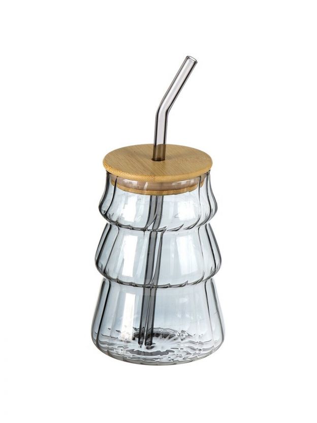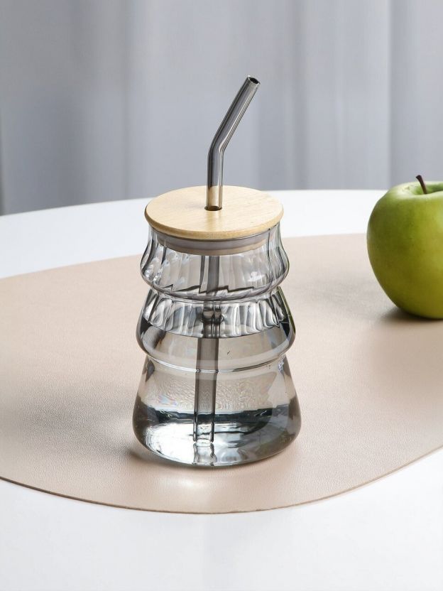 Закажите стакан для напитков 500 мл с крышкой и трубочкой по выгодной цене — оцените качество стекла и стильный вид уже при первой покупке!
