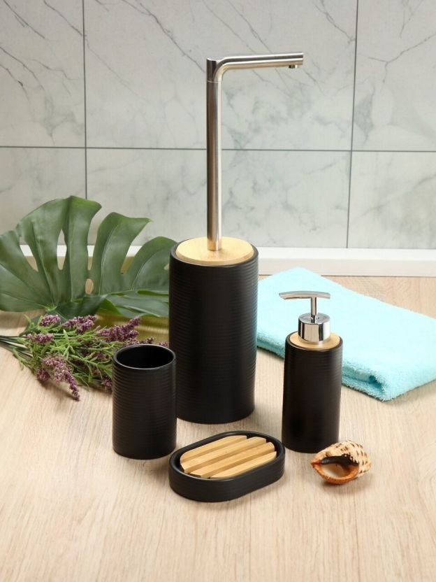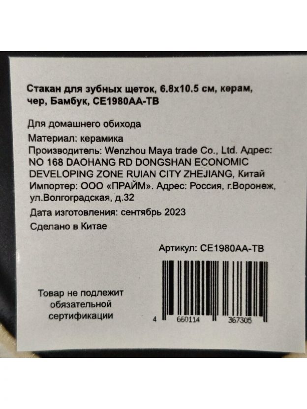 Стакан для зубных щеток, 6.8х10.5 см, керамика, черный, Бамбук, CE1980AA-TB