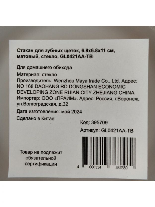 Стакан для зубных щеток, 6.8х6.8х11 см, матовый, стекло, GL0421AA-TB