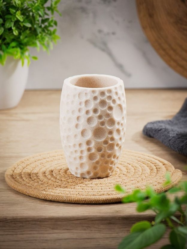 Этот стакан для зубных щеток станет неотъемлемой частью вашей ванной комнаты благодаря своему современному дизайну и универсальному бежевому цвету, который легко впишется в любой интерьер. Круглая форма и брашированная фактура добавляют изысканности и утонченности, придавая изделию уникальный характер.
