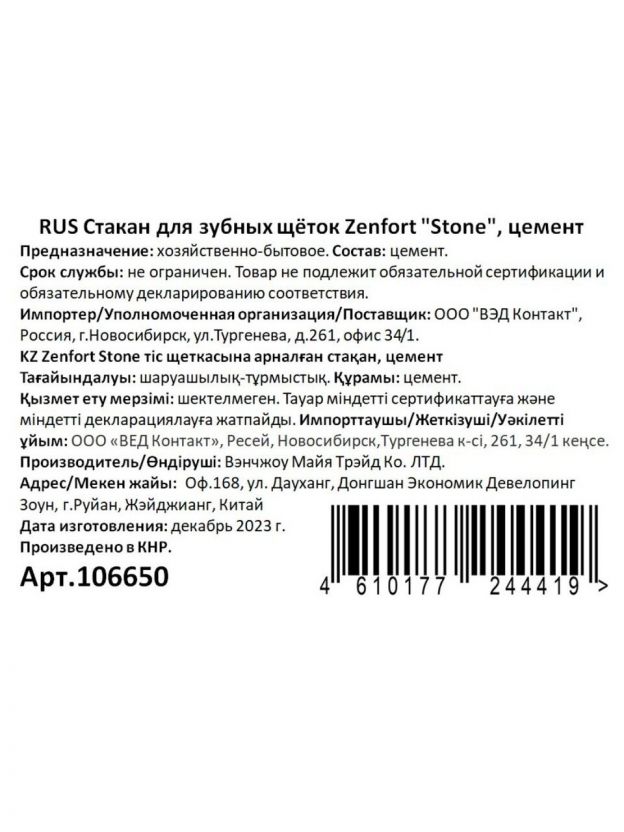 Как выбрать стакан для зубных щеток? Важно учитывать не только внешний вид, но и практичность: керамика Zenfort Stone не впитывает запахи, легко моется и не скользит по поверхности раковины. В отличие от пластиковых аналогов, этот стакан сохраняет презентабельный вид годами. Подходит ли для семейного использования? Да, за счет оптимальной высоты (10,5 см) и ширины (7 см) он вместит до 4 стандартных щеток, сохраняя их в вертикальном положении. Можно ли использовать для хранения мелочей? Да, стакан универсален — подойдет для кистей, аксессуаров, бритв.