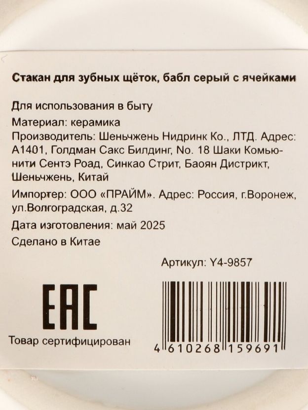 Стакан одинарный, без держателя и дополнительных секций, что облегчает уход и делает его универсальным для любых гигиенических принадлежностей.